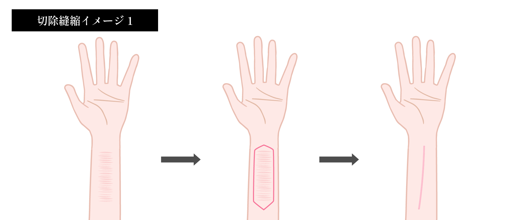 切除縫縮とは傷跡周囲の皮膚を切り取り、縫合して1本の傷跡にする施術方法です。