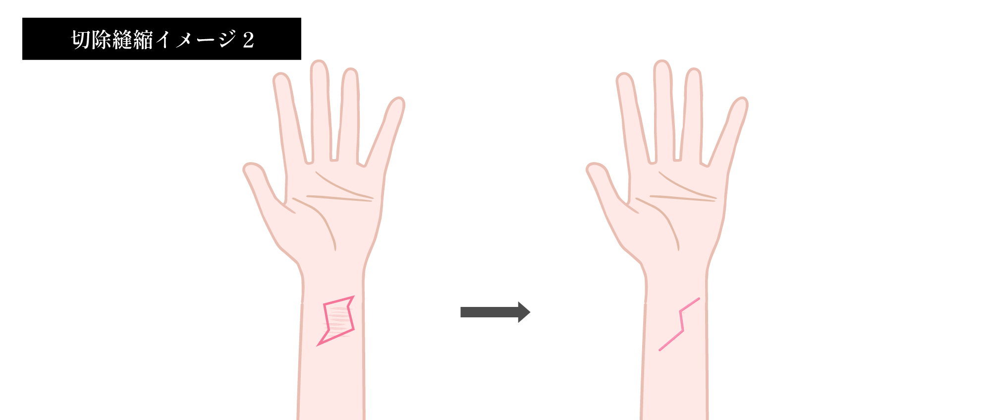 切除縫縮とは傷跡周囲の皮膚を切り取り、縫合して1本の傷跡にする施術方法です。